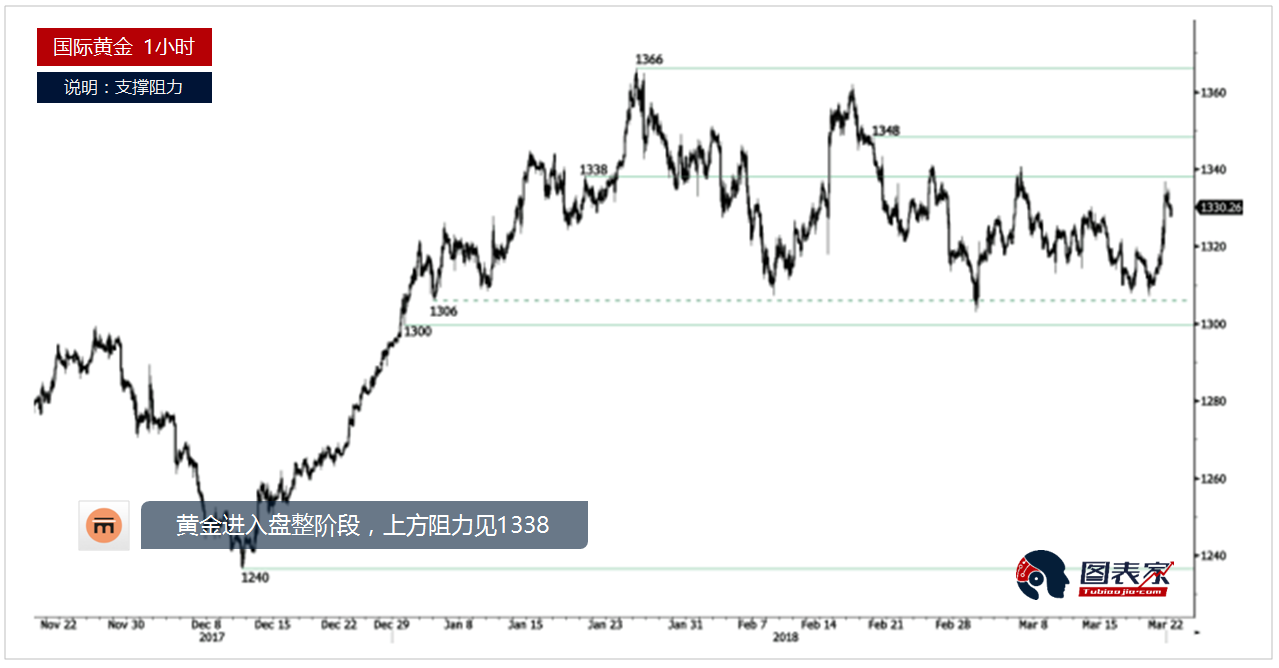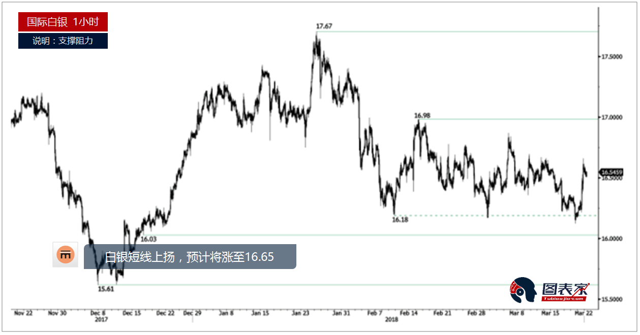 黄金、白银(16.37, -0.05, -0.30%)及原油(64.46, -0.71, -1.09%)每日分析(2018.03.22)