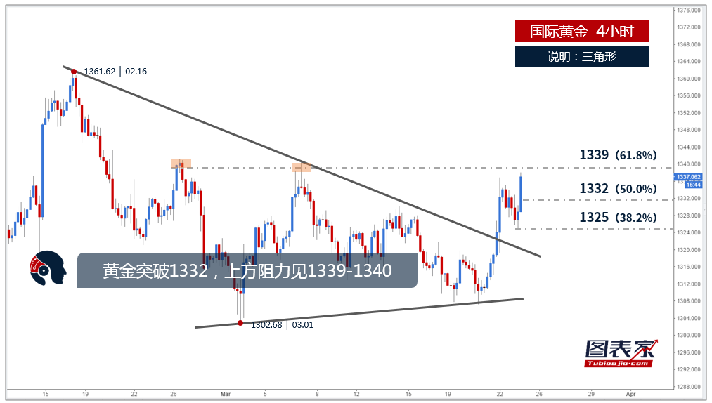 【晨报】黄金突破1332,上方阻力见1339-1340